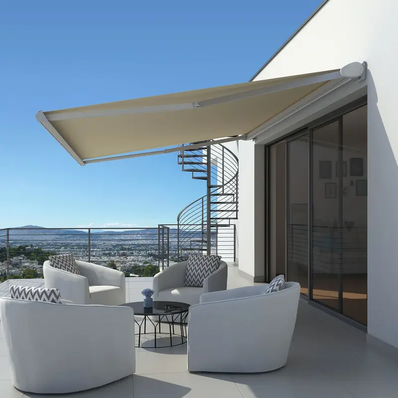 Robuste Markisen für Terrassen und Balkone, die vor Sonne und Regen schützen und gleichzeitig den Aufenthalt im Freien komfortabel machen.